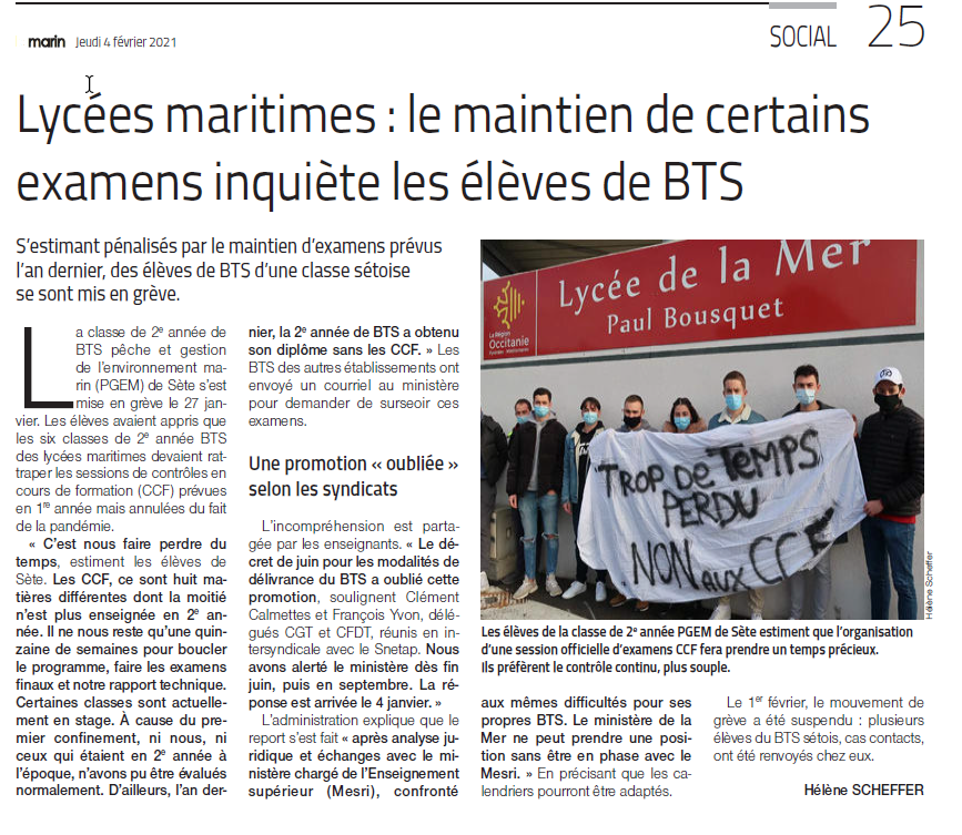 Grève au LPM de Sète : Article du Marin le 04 février 2021 publié le 5 février 2021 (modifié le 18 février 2021) Haut de page
